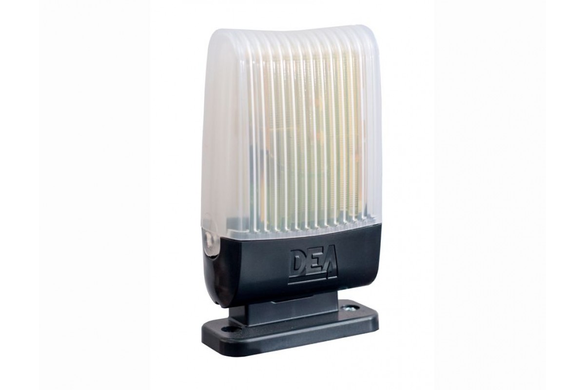 Сигнальная лампа DEA предназначена для предупреждения о движении автоматических ворот, шлагбаума, а также для увеличения радиуса действия пультов дистанционного управления благодаря встроенной антенне.