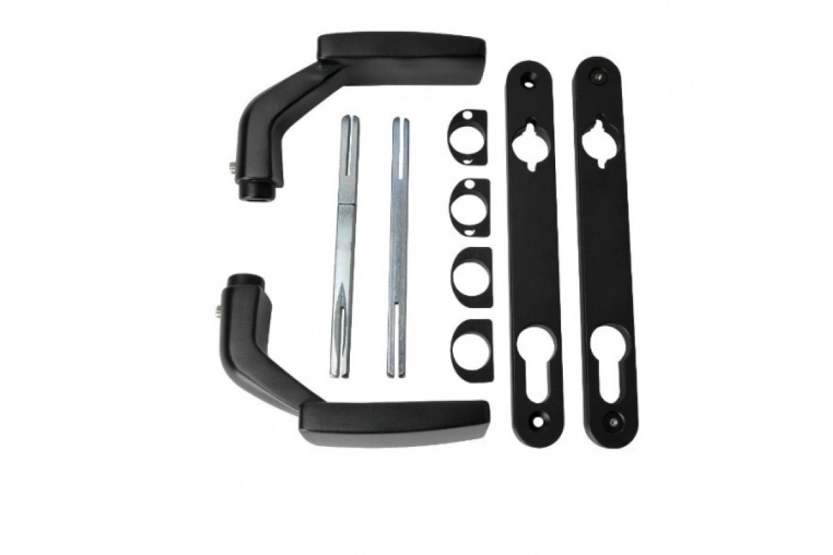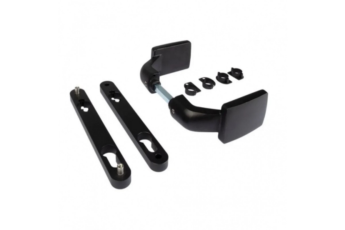 Пара ручек из анодированного алюминия с защитными накладками, позволяющие проводить следующие комбинации: поворачиваются обе ручки, фиксирована одна ручка или фиксированы обе ручки. Эта пара ручек совместима с врезными замками Fortylock, Fiftylock и Sixtylock.