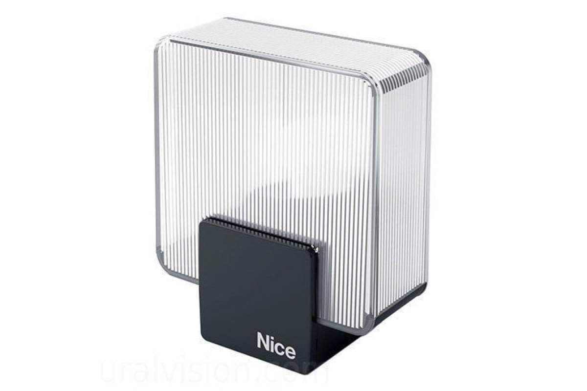 Сигнальная лампа NICE ELAC - источник света и безопасности эксплуатации автоматики. Предназначена для уведомления окружающих о начале работы привода ворот, для освещения прилегающей территории, а также для диагностики неполадок автоматики.